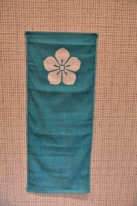 明智光秀の桔梗の家紋がついたあさぎ色のタオルを販売しています。