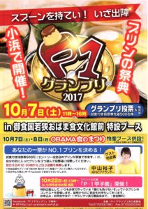 - イベント名 第5回「P-1グランプリ」(プリンナンバーワングランプリ) OBAMA食のまつりと合同開催