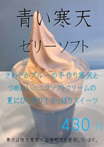2018年5月11日2021年12月15日 romanteiShop・お知らせ・大正村浪漫亭 青いソフトクリームを販売中! 大正村浪漫亭内のマルコ醸造では 青い寒天ゼリーソフトを1日30個の限定で 販売しています さっぱりしていて好評です 数に限りがあるので売切れの場合はご了承下さい