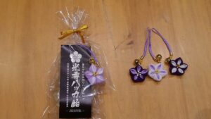(2)光秀ハッカ飴とつまみ細工の桔梗の根付けセット