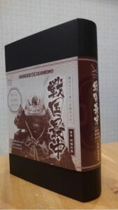 刀のつばの形をした最中の皮とあんこが別々に入っている組み立て式の手作り最中。戦国時代真っ最中のことを明智光秀が本を書いたかの様にして、本に見立てたパッケージの光秀商品。